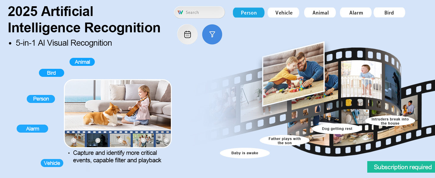 - Mobile App Control:View live video, playback recordings, enable two-way talk, and set custom detection zones.